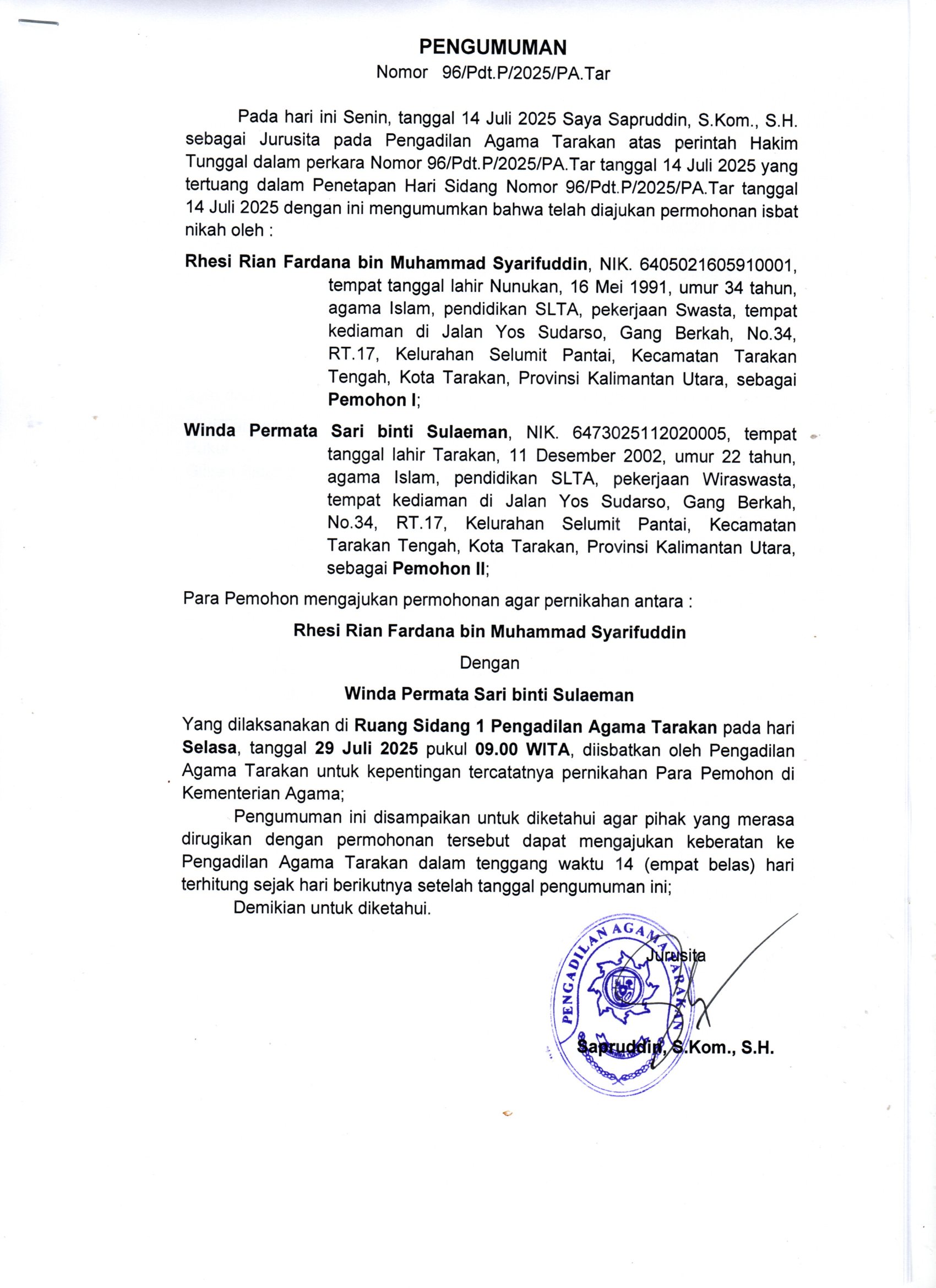 Dalam memberikan pelayanan, Pengadilan Agama Tarakan tidak menerima pemberian dalam bentuk apapun, baik kepada perorangan maupun lembaga. Apabila terdapat penyimpangan pada saat menerima layanan kami, agar melaporkan melalui Sistem Informasi Pengawasan (SIWAS) Badan Pengawasan Mahkamah Agung Republik Indonesia dengan mengakses link: https://siwas.mahkamahagung.go.id.