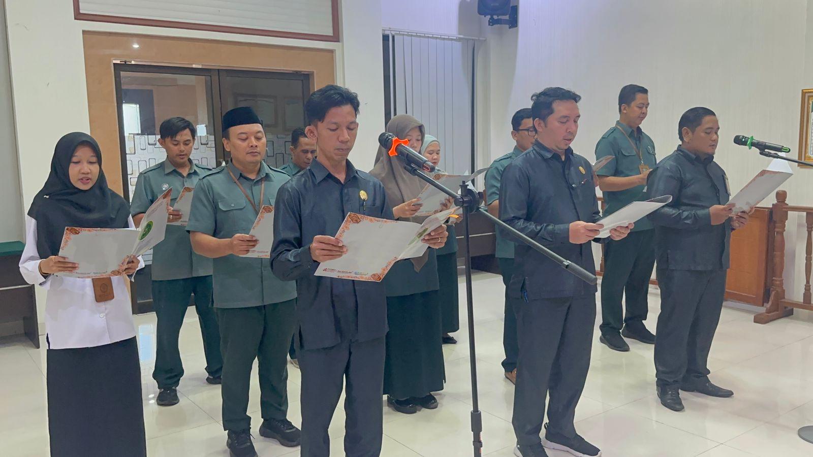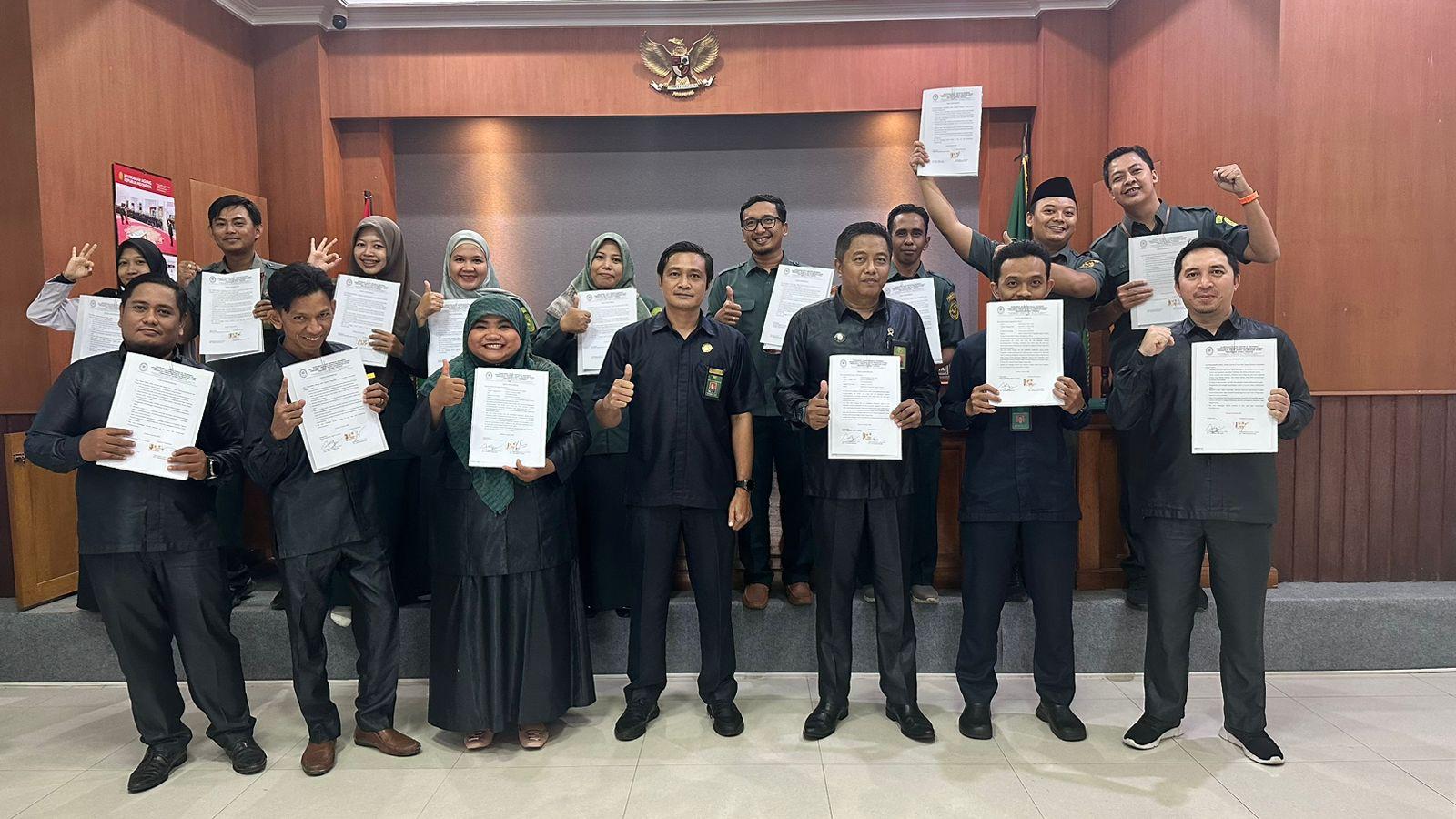 Tarakan, Rabu(08/01/2025) — Pengadilan Agama Tarakan melaksanakan penandatanganan pakta integritas di Ruang Sidang Utama PA Tarakan. Penandatanganan tersebut diikuti oleh Seluruh Pegawai PA Tarakan mulai dari unsur Pimpinan yaitu Ketua, Wakil Ketua, Sekretaris, dan Panitera serta Hakim, Pejabat Fungsional, Pejabat Struktural, Jurusita Pengganti, dan PPNPN.